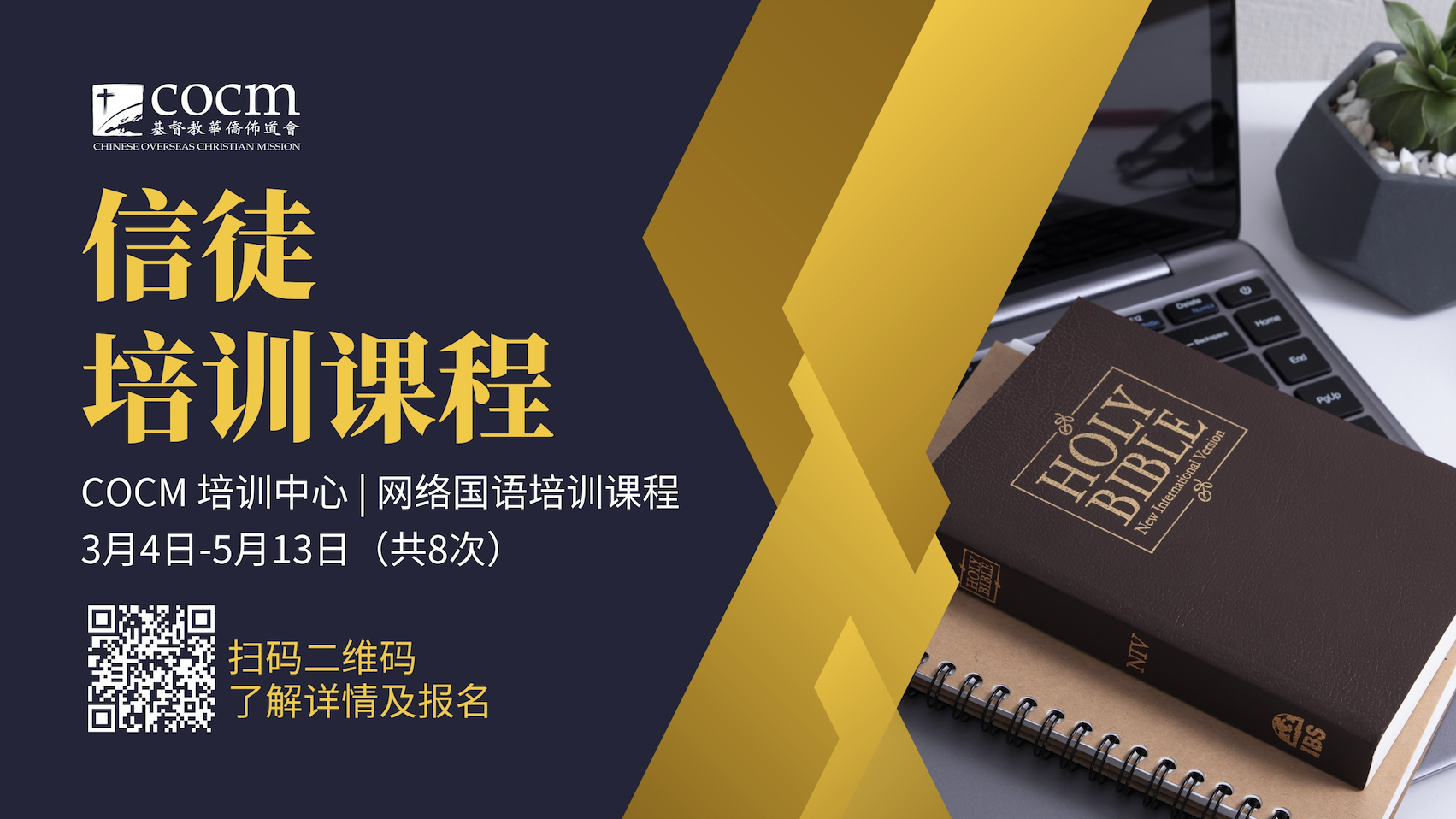 COCM Training Centre is part of Chinese Overseas Christian Mission (COCM), providng Christian education and training. It aims to build up Christians in the UK and Europe through a variety of courses, events, seminars and resources in the following six aspects: biblical literacy, theoloigcal foundation, spirtuality, personal life, church, and mission.